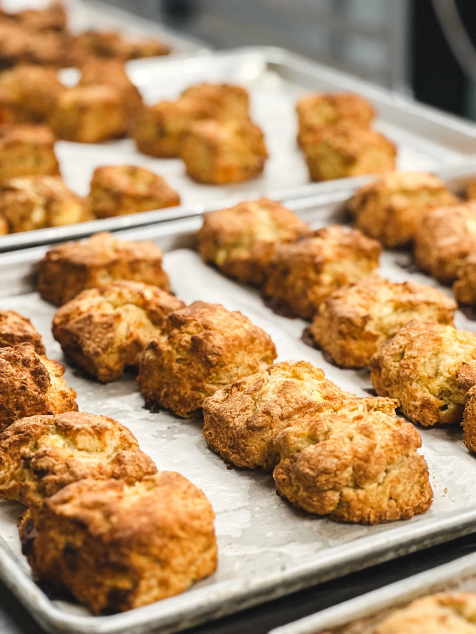 Tout ce qu’on sert est fait maison — de nos muffins et biscuits cuits chaque jour jusqu’au pain de nos sandwichs. Notre menu est simple, frais, et pensé pour le quotidien — que ce soit pour une bouchée avant le travail ou une pause dîner légère.